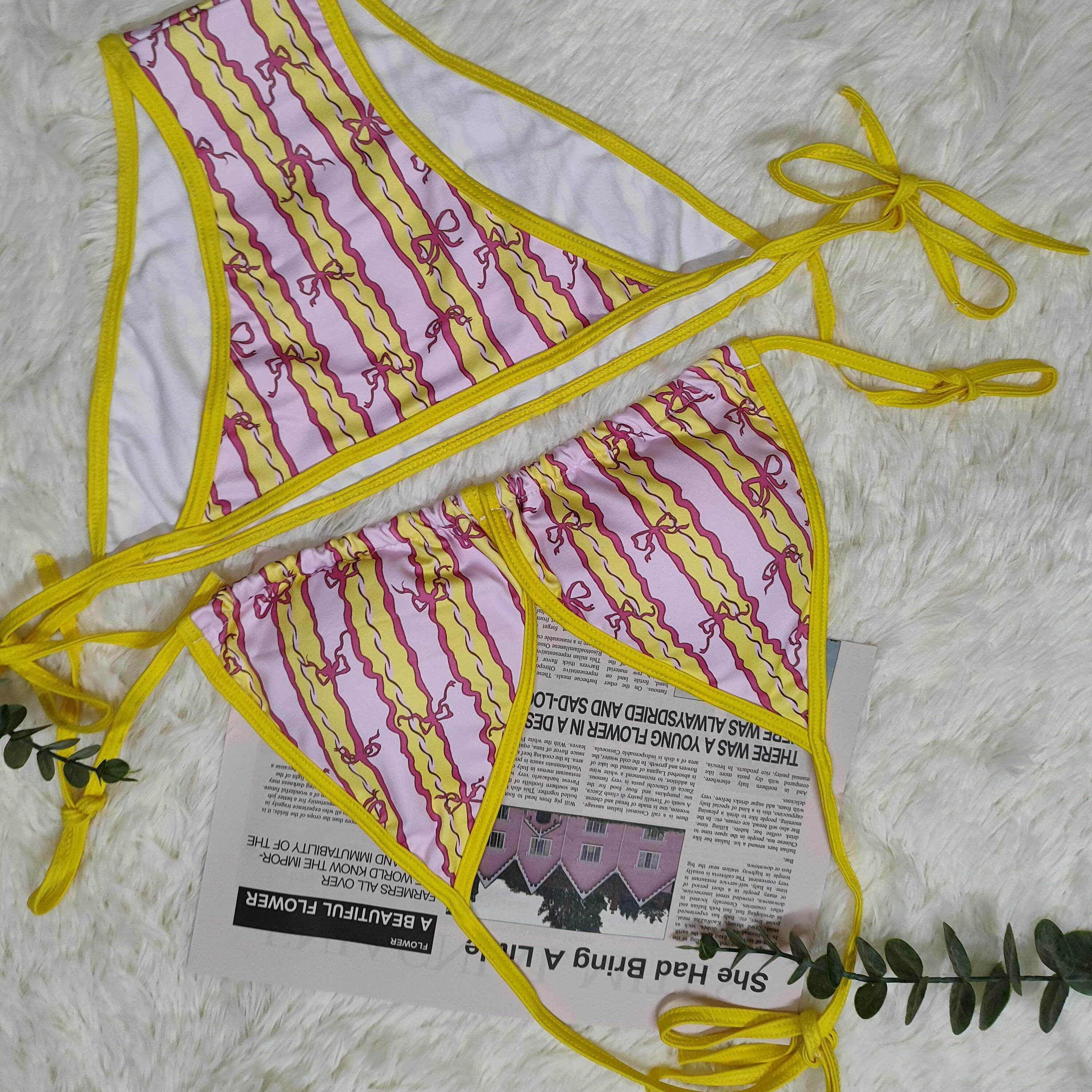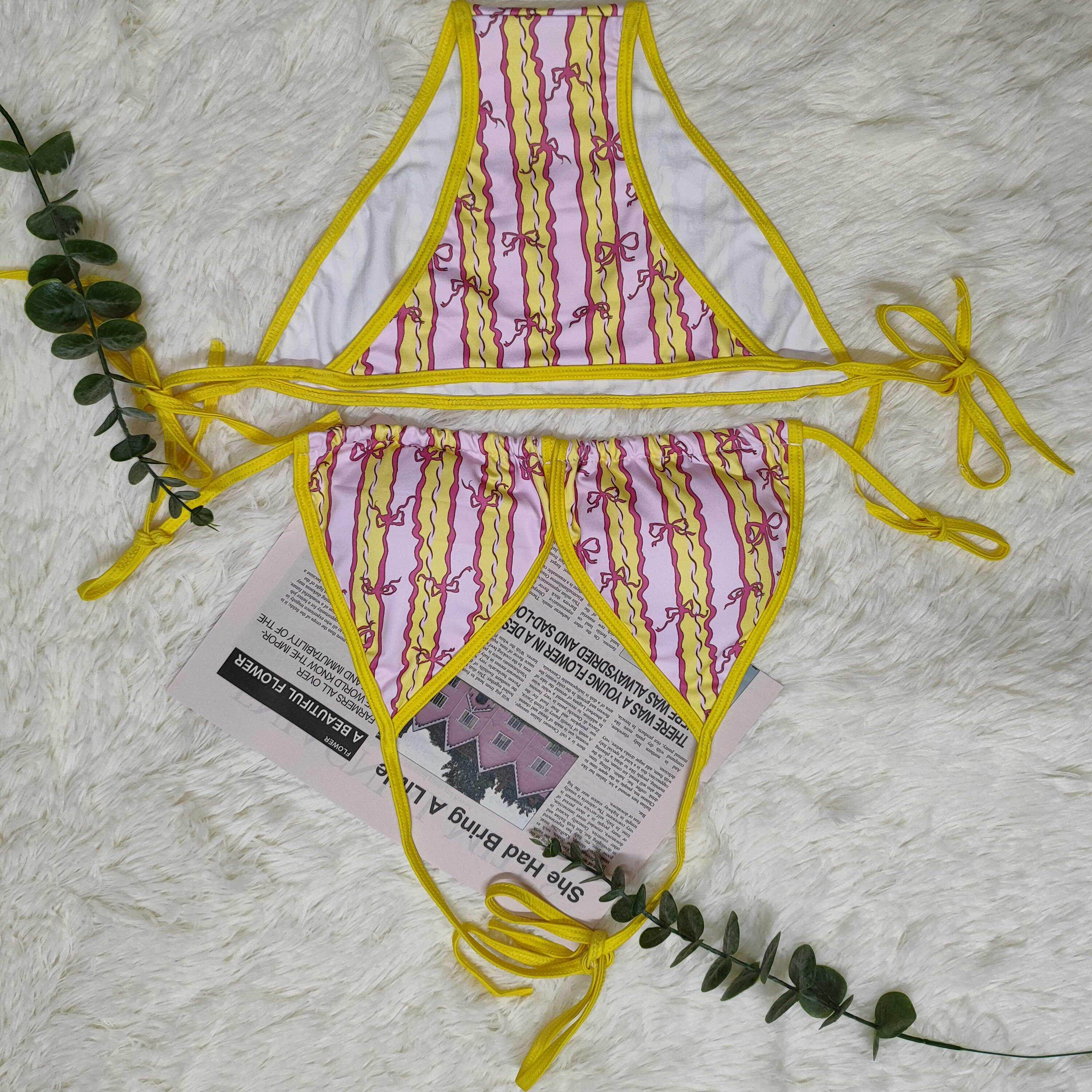 泳衣两件套 度假沙滩性感三角式 Babe原创蝴蝶结少女比基尼套装 夏季