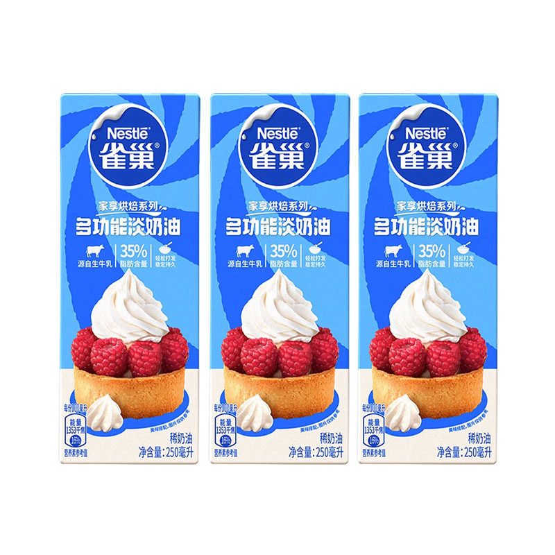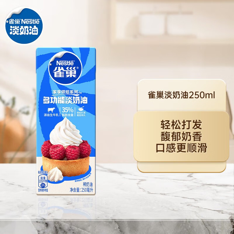 雀巢淡奶油动物性鲜奶油做蛋糕蛋挞裱花易打发250ml原装 烘焙原料
