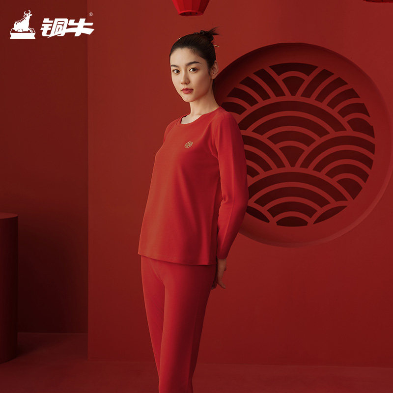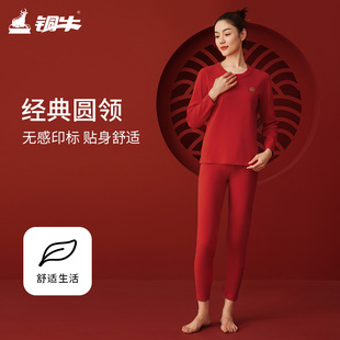 铜牛抗菌防螨慕斯棉圆领女红套 VN090 秋冬本命年秋衣秋裤