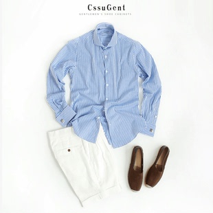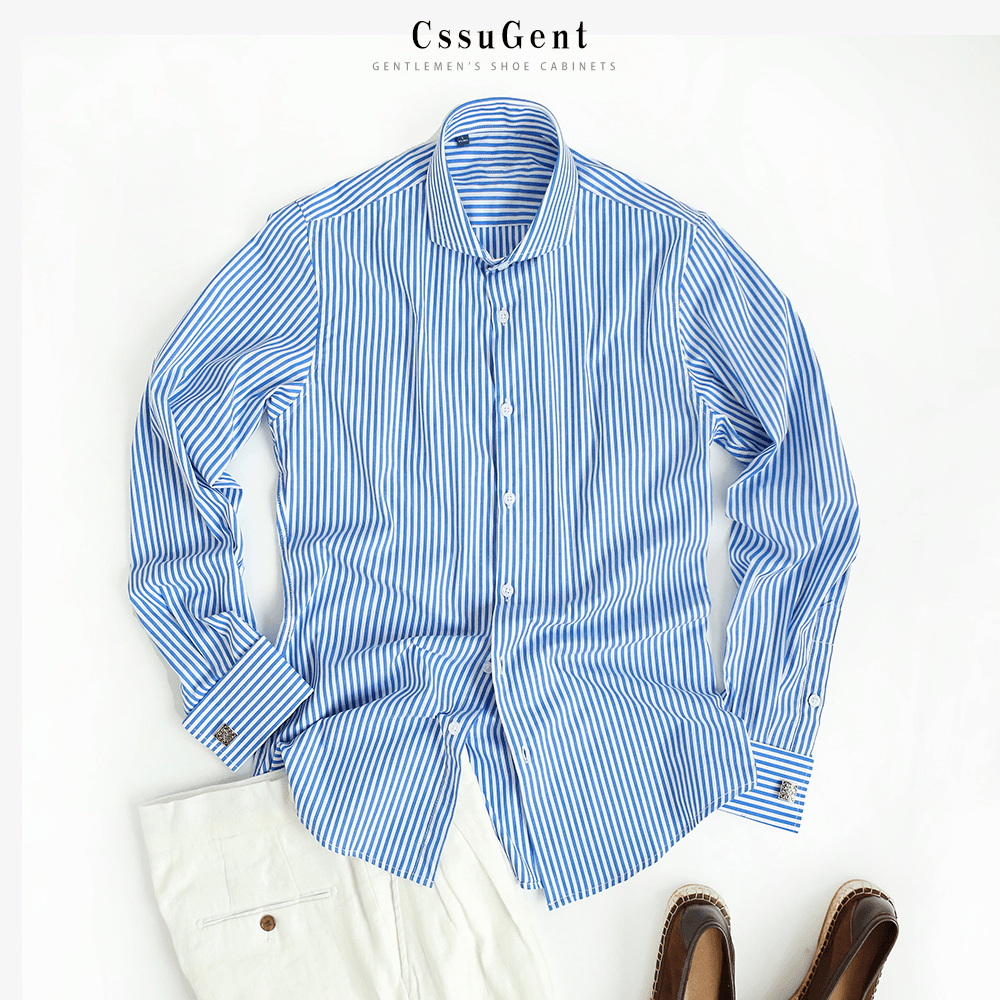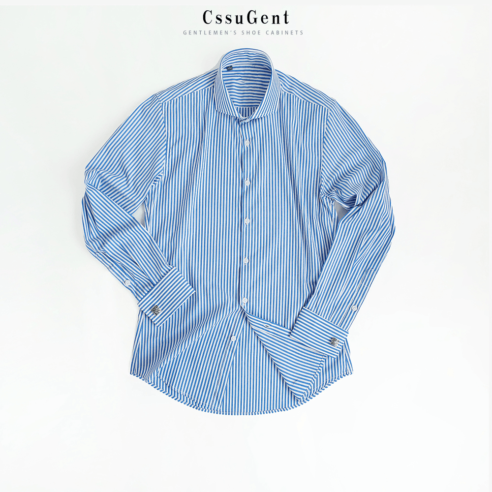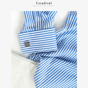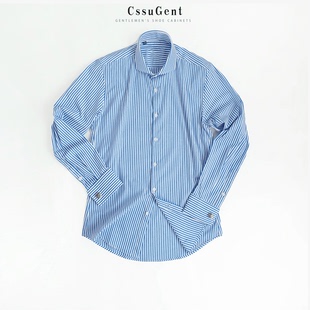 扣温莎领条纹长袖 婚礼主持经典 衬衫 商务正装 备婚衬衣 男士 复古法式