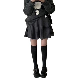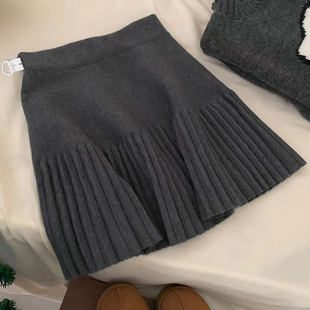 孕妇半身裙秋冬季 深灰色显瘦托腹A字裙子针织伞裙小个子百褶短裙