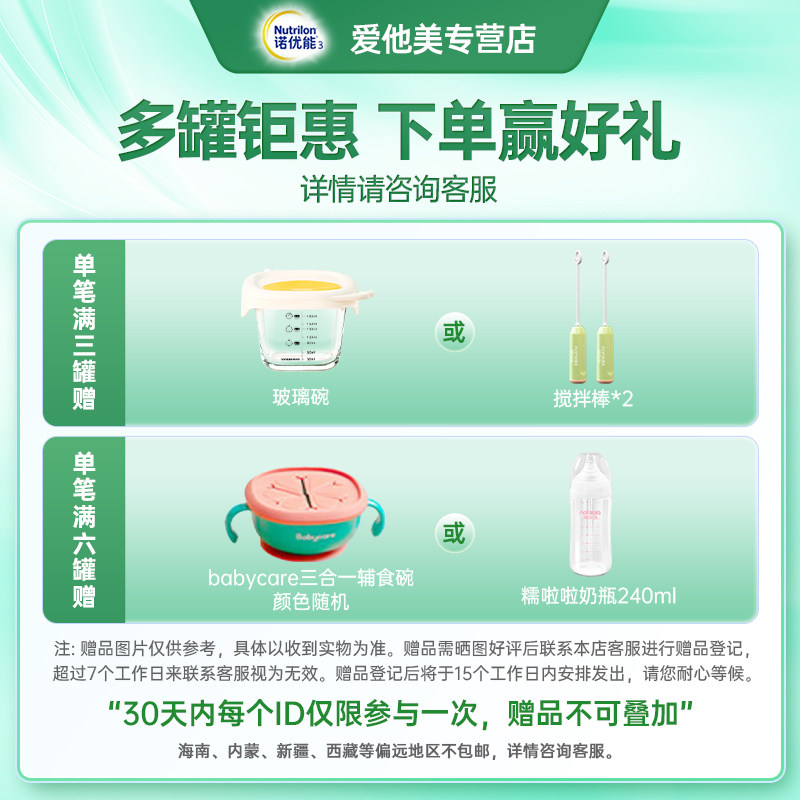 新国标诺优能诺优蕴奶粉3段三段婴幼儿配方牛奶粉800g官方正品 DHA