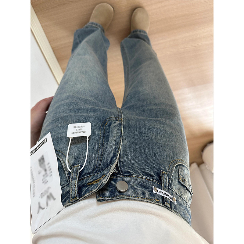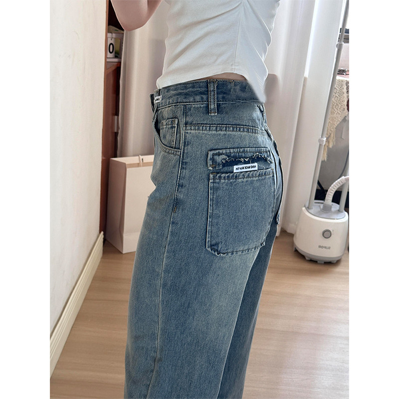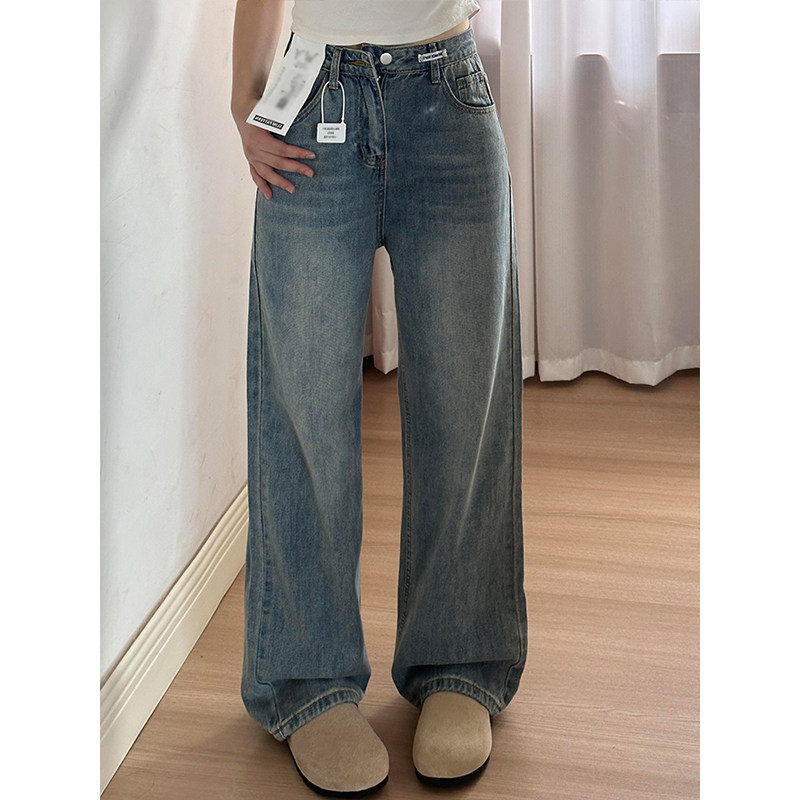 宽松高腰设计感显瘦阔腿裤 女新款 子 胖mm复古直筒牛仔裤 300斤大码