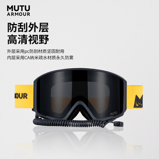 MUTU电加热滑雪眼镜防雾护目镜大广角柱面镜野雪粉雪必备神器