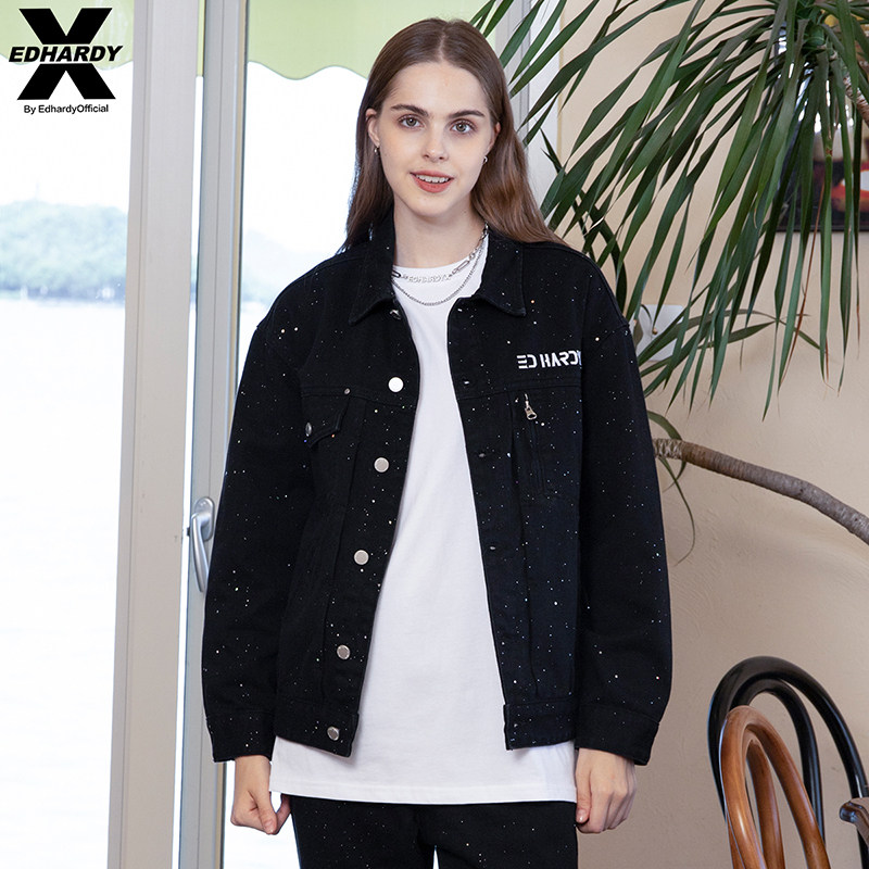 阿于呆秋冬日系假两件水洗连帽牛仔外套男宽松休闲情侣工装 夹克女