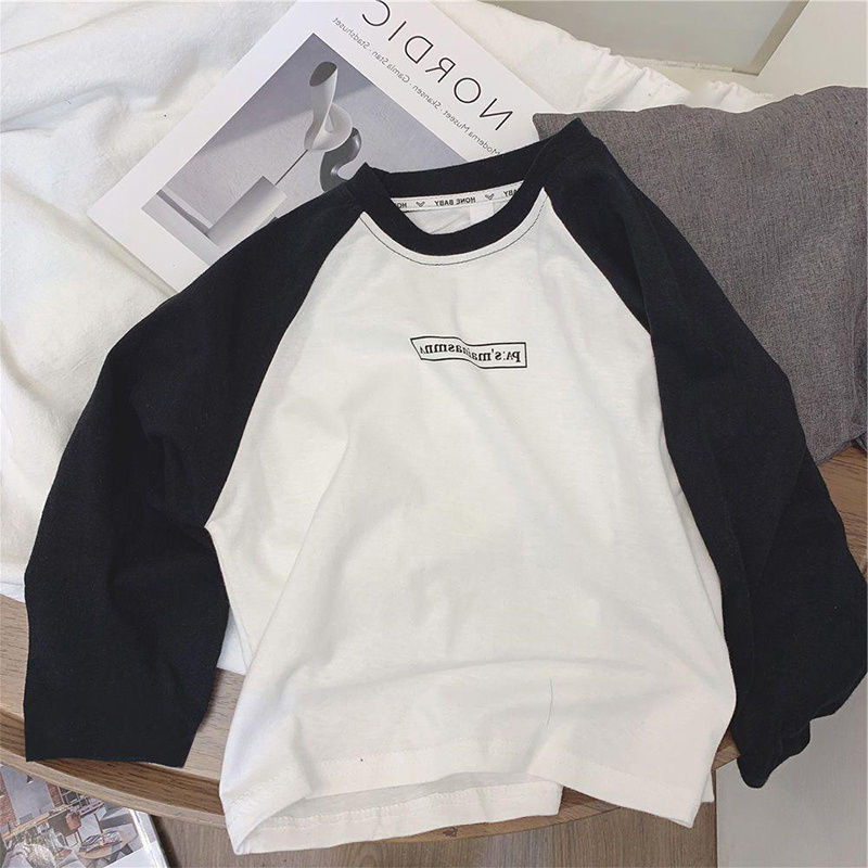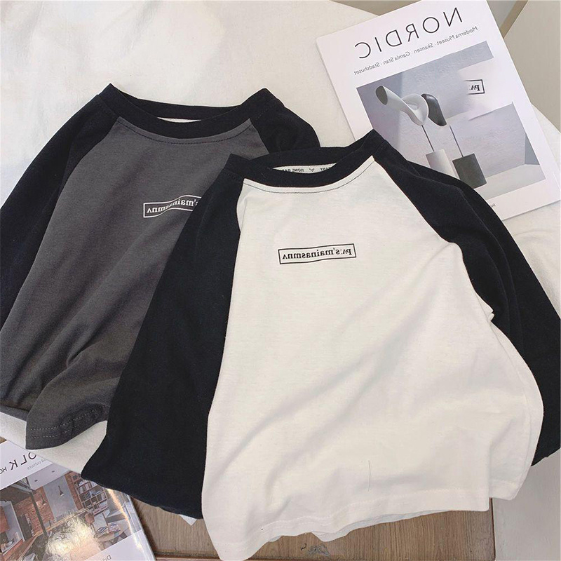 宝宝小童打底衫 儿童长袖 上衣2025新款 男童插肩袖 T恤拼色纯棉秋装