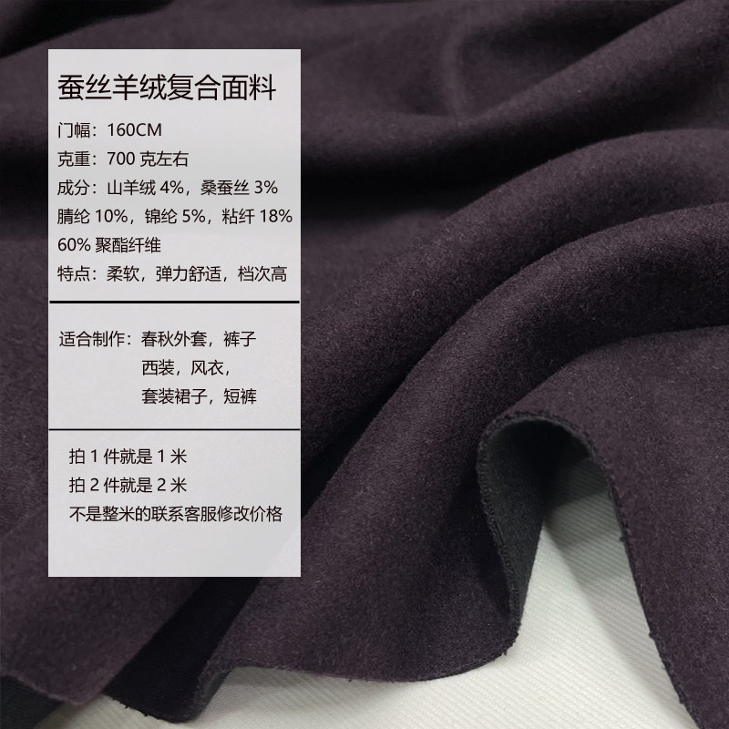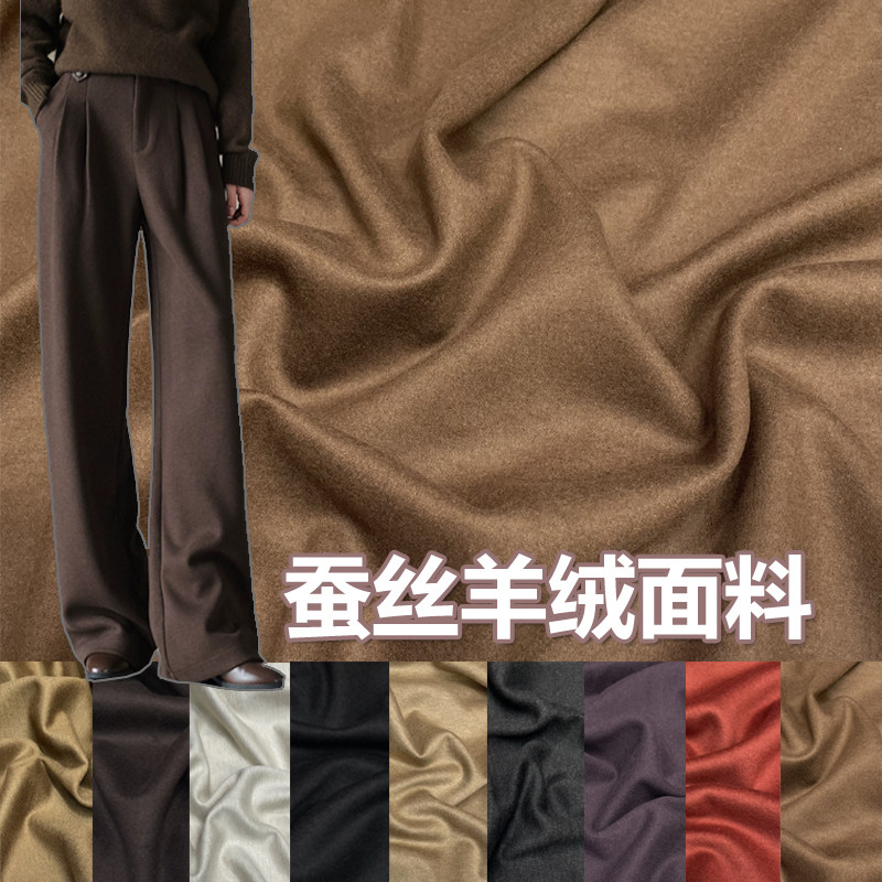 面料 裙子服装 精纺保暖桑蚕丝羊绒复合裤 子布料秋冬弹力羊毛呢时装