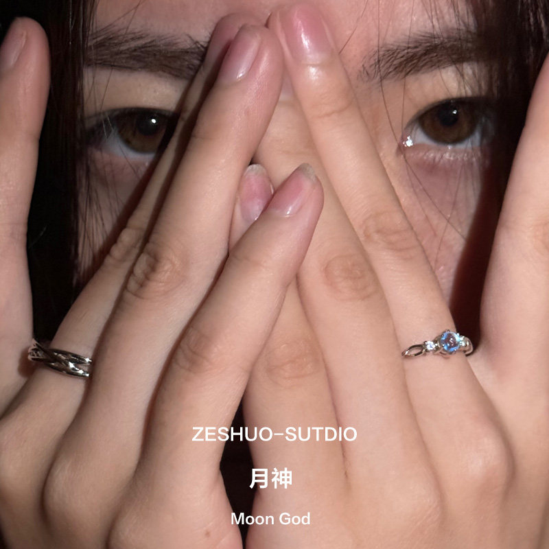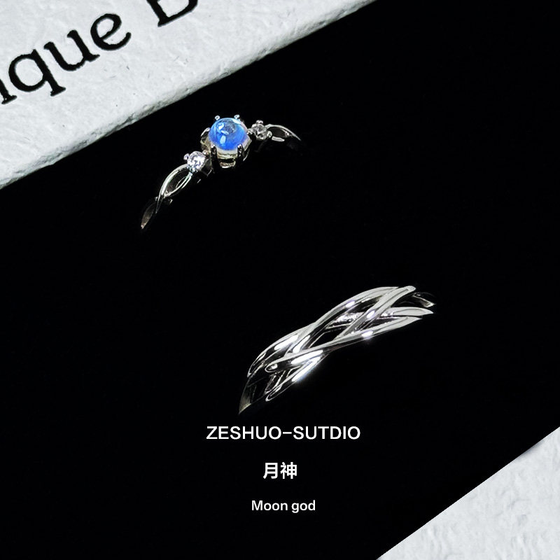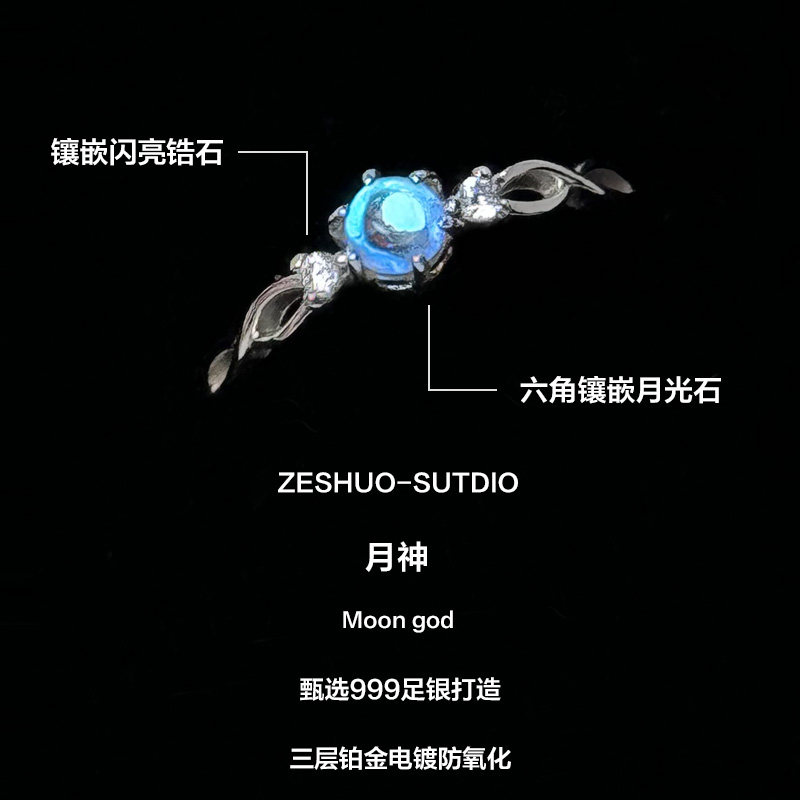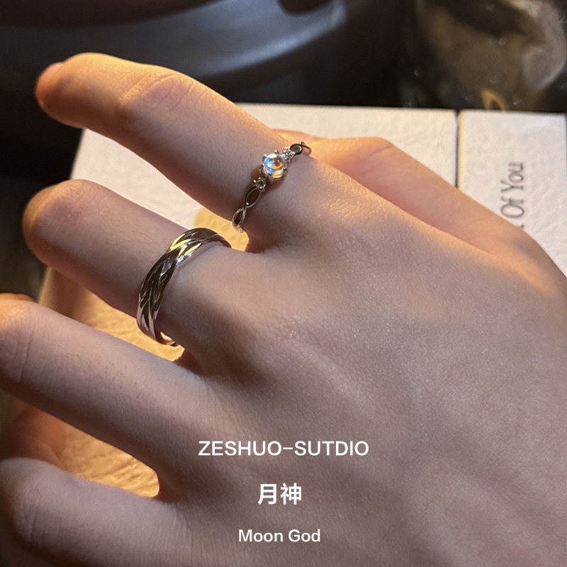 爆款 ZESHUO月神 999足银情侣对戒轻奢小众月亮石纯银戒指2024新款
