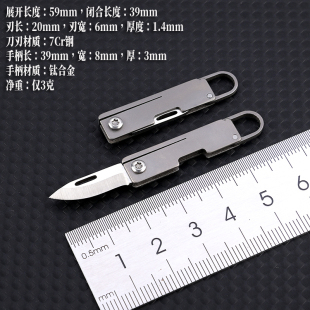 钛合金迷你钥匙扣小刀锋利便携袖 珍折叠刀随身挂件开箱拆快递小刀