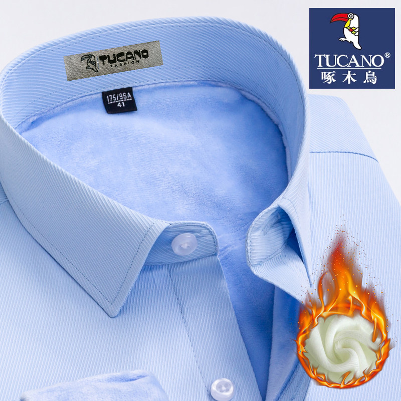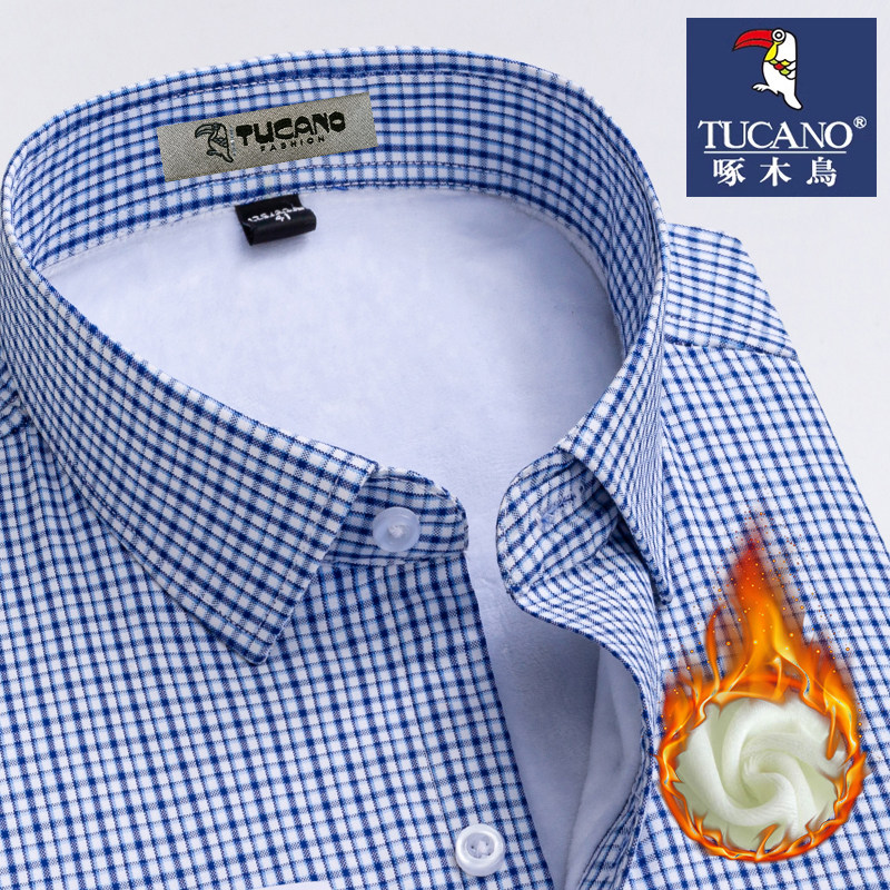 抗皱长袖 加大宽松保暖衬衣中年加厚商务正装 冬寸衣 衬衫 啄木鸟男装
