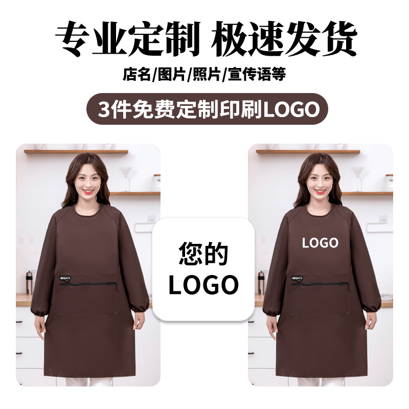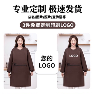 男罩衣女冬季 围裙防油防水可爱定制logo印字上班专用 加绒加厚长袖