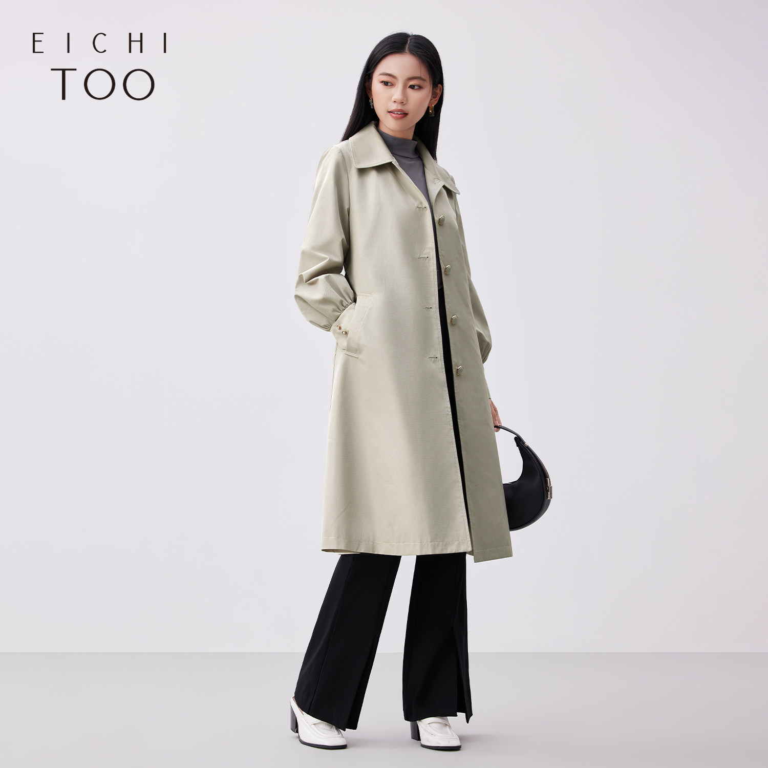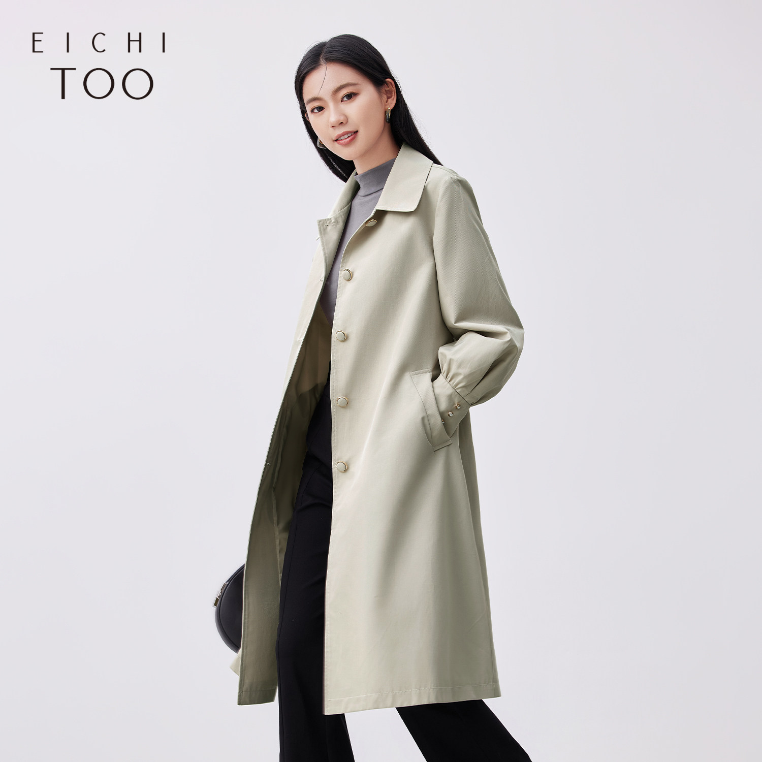 风衣外套 长款 爱居兔春季 小翻领腰带设计时尚