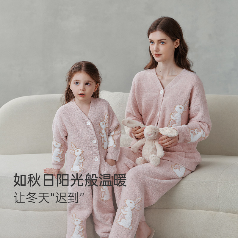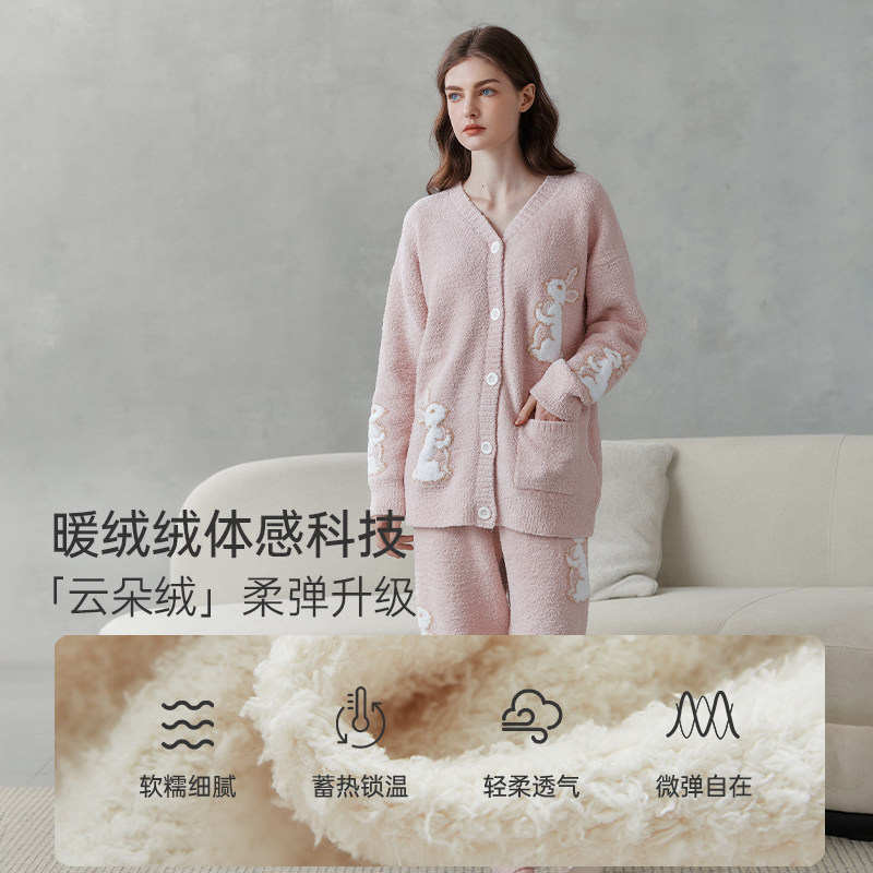 提花拉链刺绣小熊家居服外套装 珊瑚绒睡衣女冬季 保暖 双层加厚