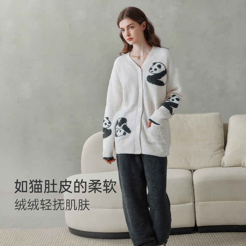 可外穿秋冬季 ubras有钱花家居服女半边绒睡衣情侣套装 加厚绒男款