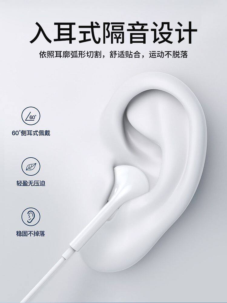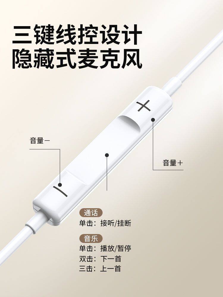 11x入耳式 带麦吃鸡高音质扁头圆头降噪 有线耳机适用苹果14