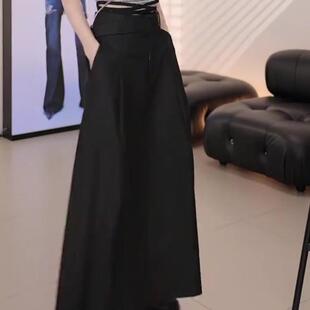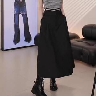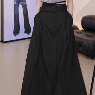 时尚 黑色半身裙女2026新款 高腰显瘦设计感A字休闲中长裙 韩版 夏季