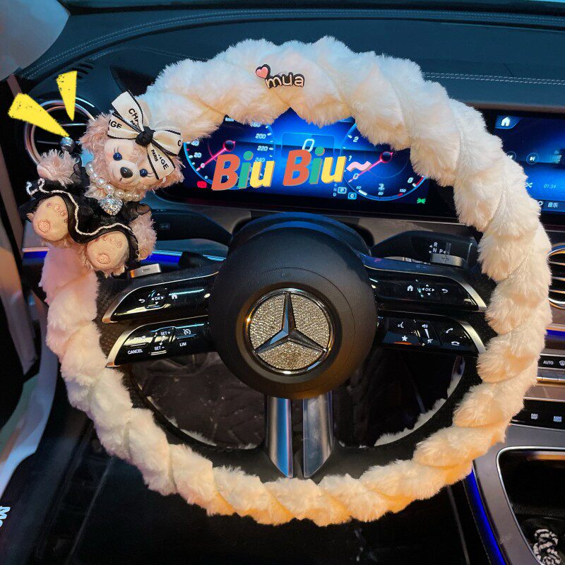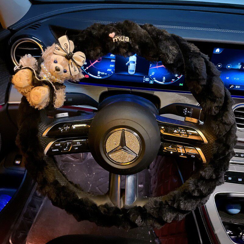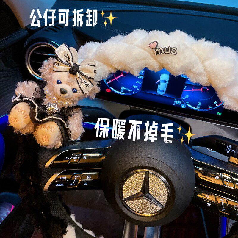 冬季 汽车方向盘把套女冬天保暖 毛绒方向盘套高级感轻奢短毛绒新款