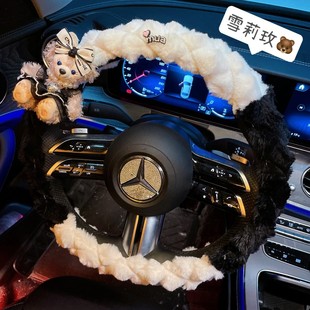 新款 毛绒车用把套可爱卡通车把套女士冬天保暖防滑套 方向盘套冬季
