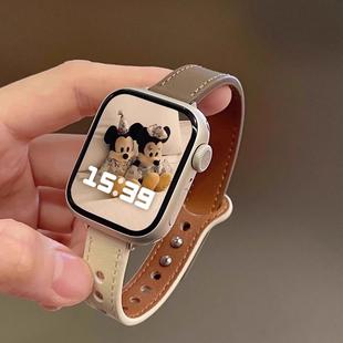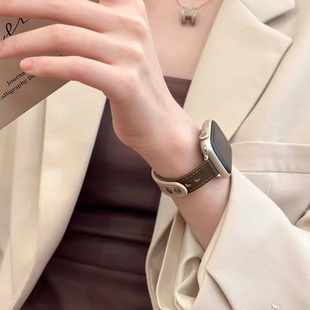 UHADA适用小米手环9pro表带秋冬双钉扣皮质小米手环10pro小红书同款 8pro高级红米iWatch4表带 智能运动男女款