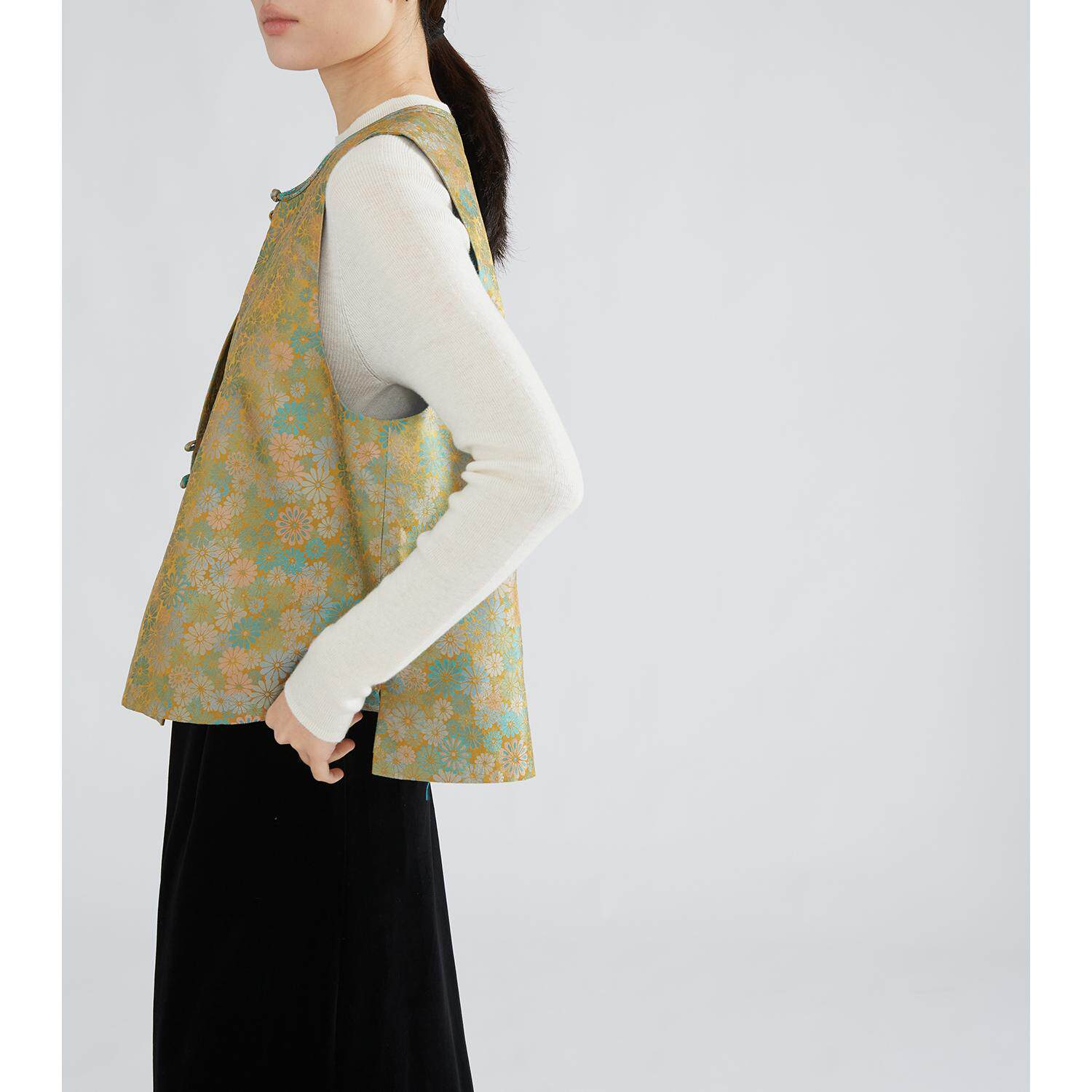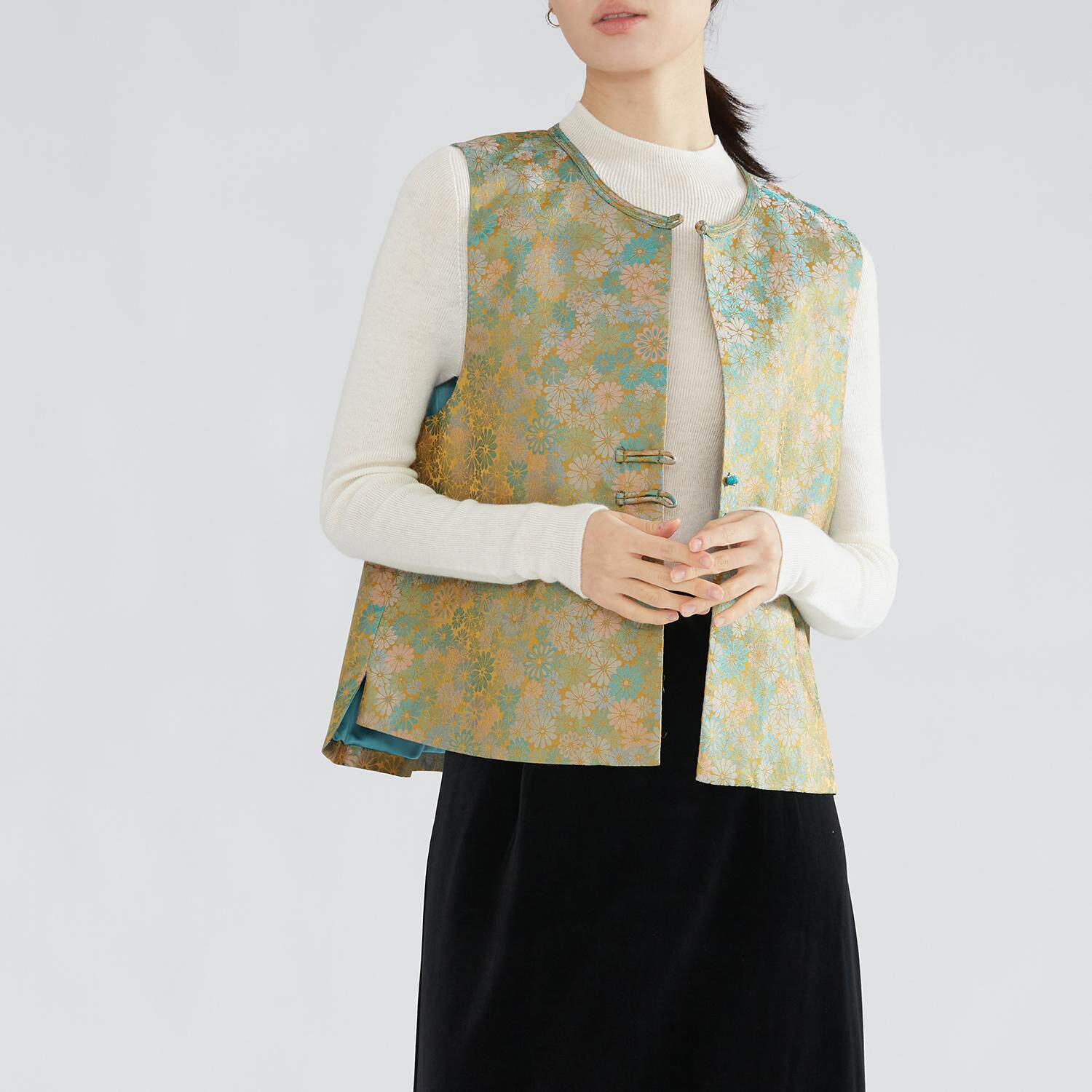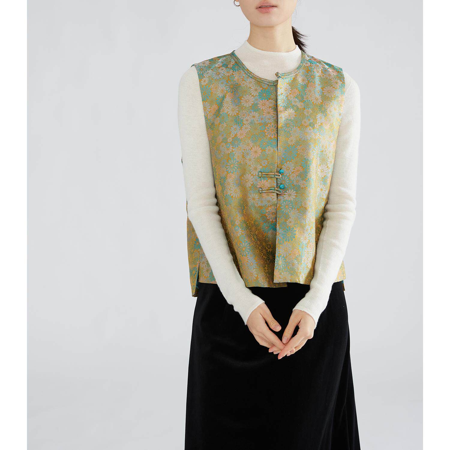 SILVIYE100桑蚕丝非遗真丝宋锦新中式 盘扣马甲国风宽松圆领坎肩