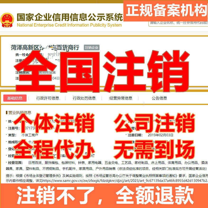 个体工商户营业执照电商公司注册上海济南昌抖音企业注销年审代办