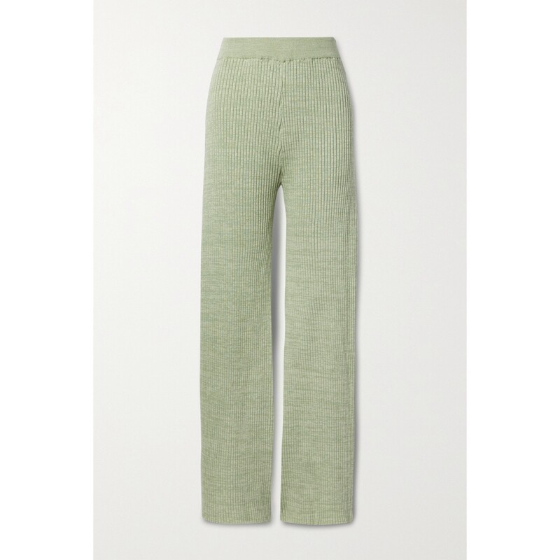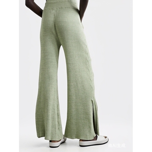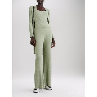 ANNA QUAN春夏女士慵懒随性绿色罗纹棉质阔腿裤