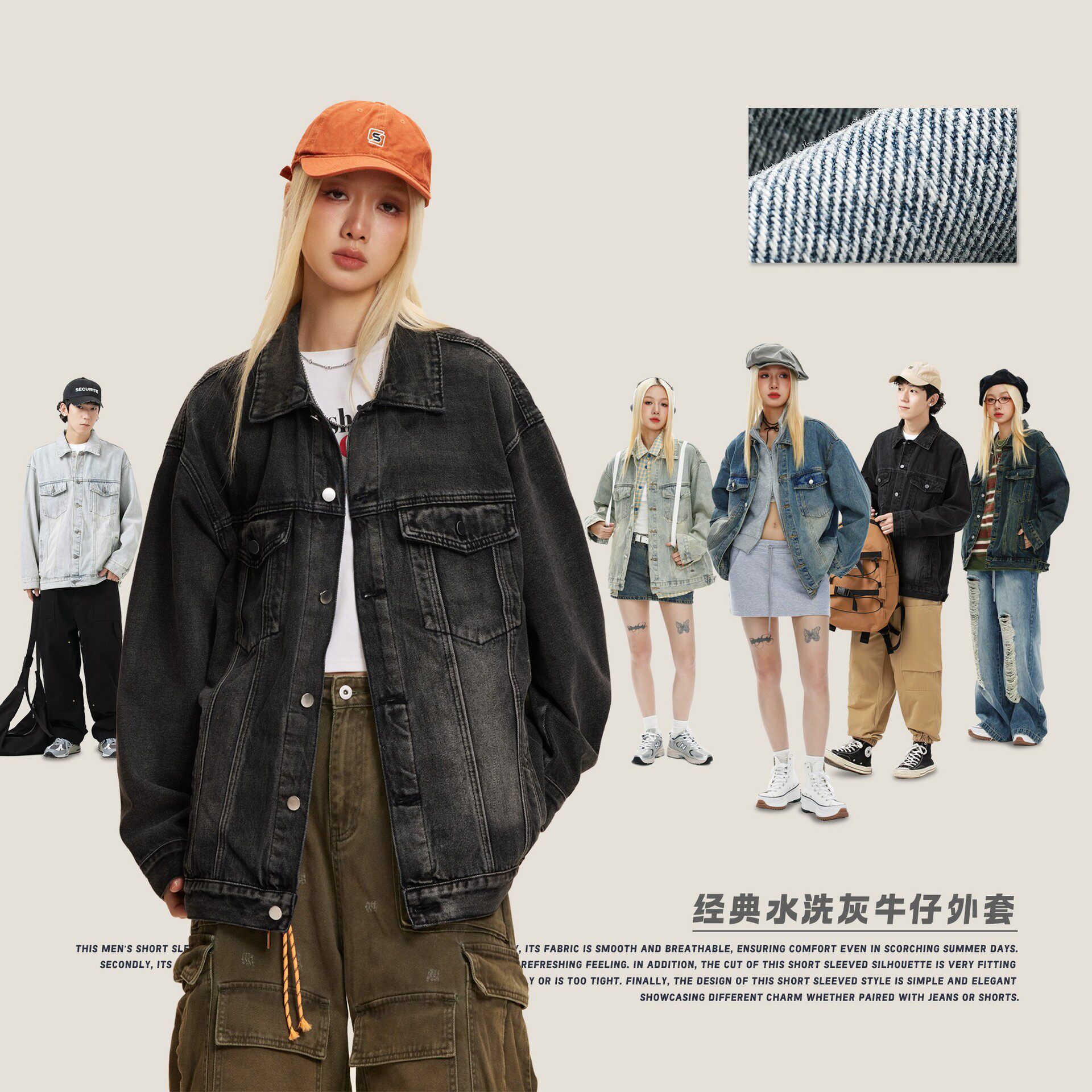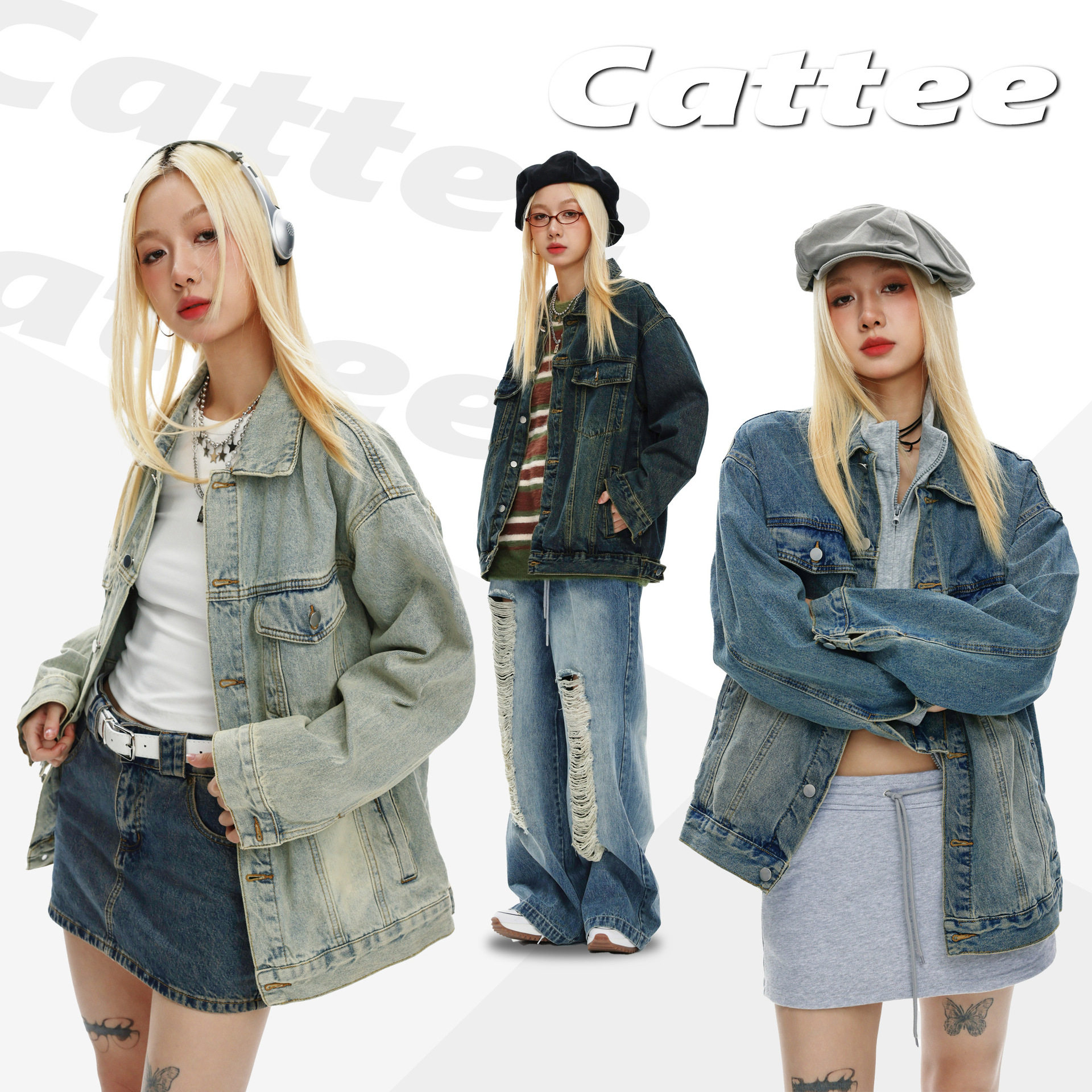 CATTEE美式 宽松百搭休闲夹克牛仔上衣 复古风怀旧牛仔外套春秋季