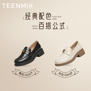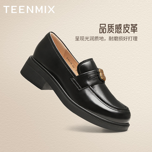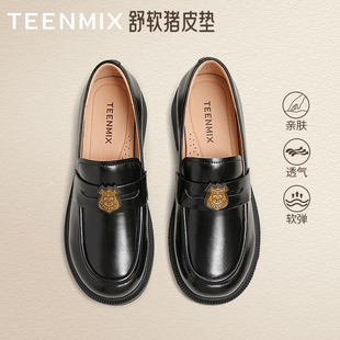 子2025秋新款 女小皮鞋 CNG30AA5 复古单鞋 天美意平底学院英伦乐福鞋