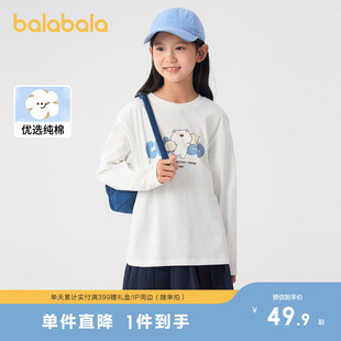 打底衫 巴拉巴拉童装 儿童印花上衣亲子装 T恤2025春秋装 潮 女童长袖
