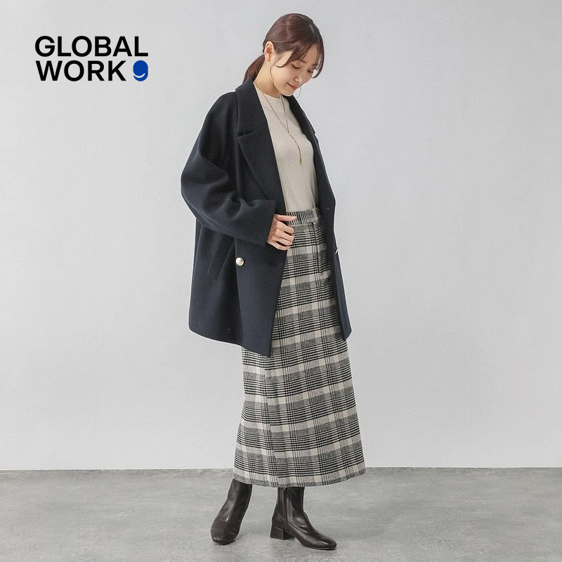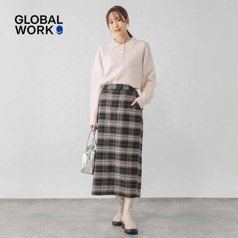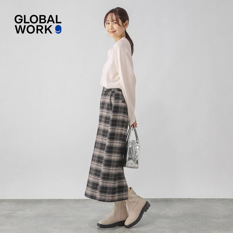 格子简约日系半身长裙115724 新款 GLOBAL WORK半身裙女冬季