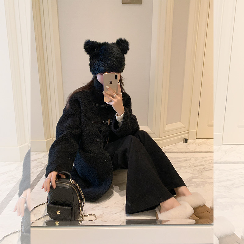 大码 胖mm简约风高级感藏青色棉服女秋冬加厚保暖小熊连帽外套 女装