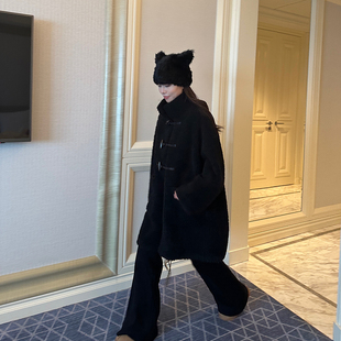 慵懒风派克服棉服 藏青色复古加厚夹棉连帽外套女胖mm美式 大码 女装