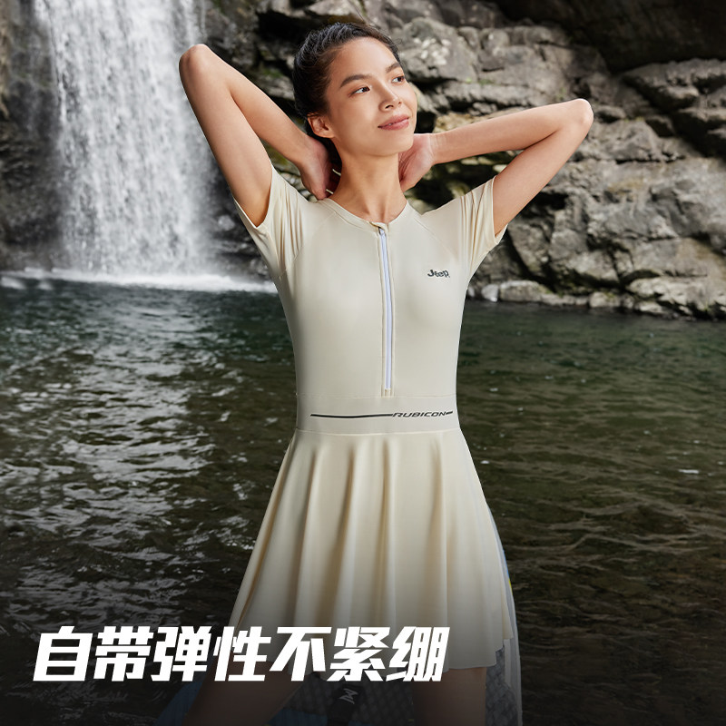 专业防晒速干泡温泉游泳装 大码 备 保守连体裙式 Jeep泳衣女2026新款