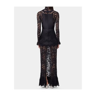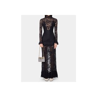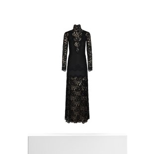 云分子原创春秋冬季 蕾丝显瘦超重工螺旋下摆气质连衣裙 V领长袖