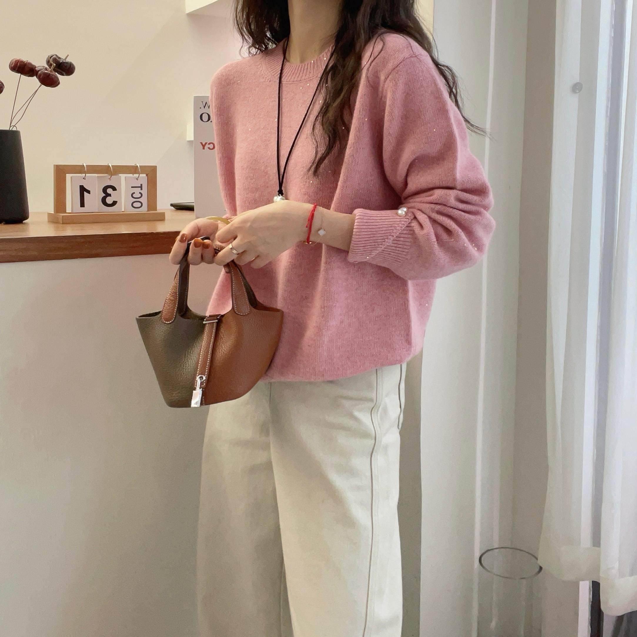 钉珠亮片蜜熊绒针织衫 欧货时尚 女秋冬软糯毛衣 新款 欧洲站2025冬装