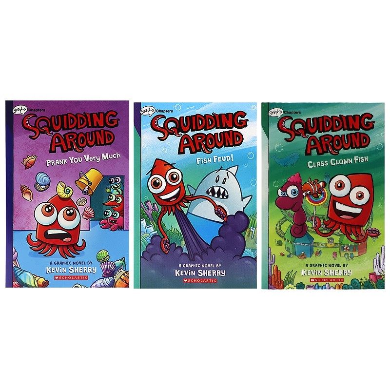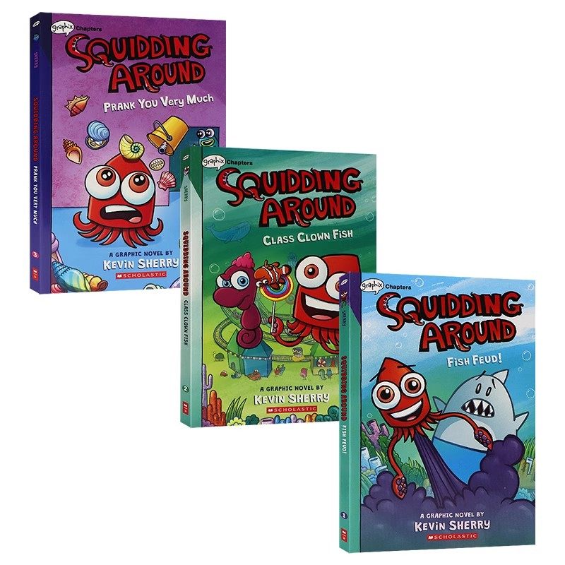 Squidding Around1 Scholastic出版 章鱼3册合售 社学乐桥梁漫画读物 搞笑漫画英语初级章节书 英文原版 儿童课外读物 疯狂