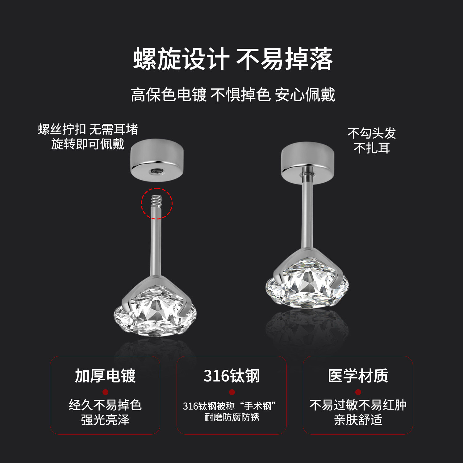 龙爪钛合金耳钉女爆闪华子耳骨钉耳蜗钉钛钢不掉色锆石耳环耳饰男