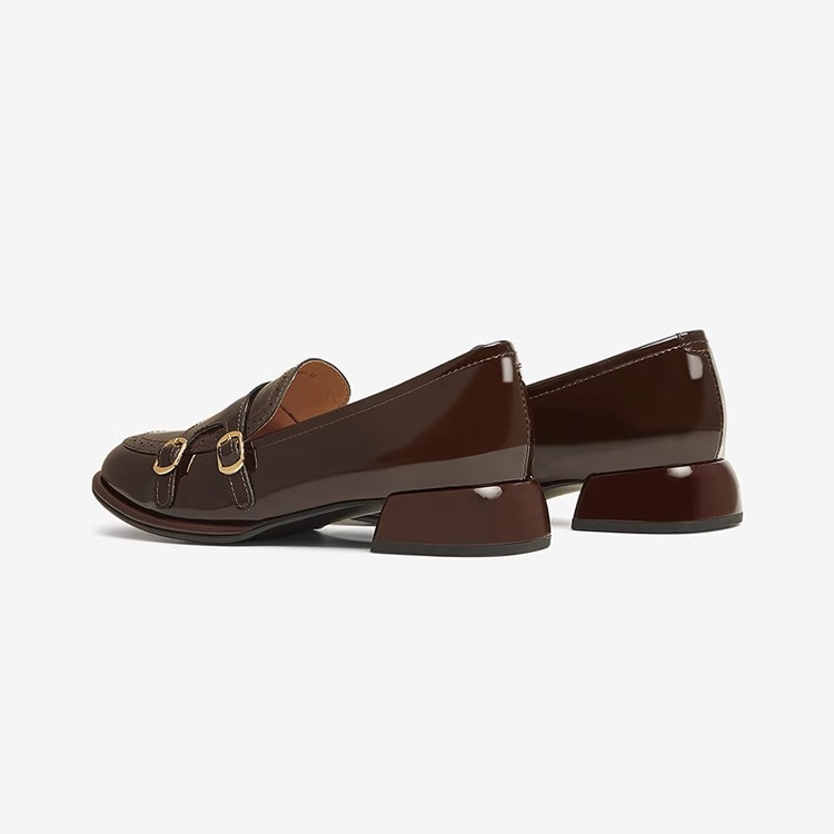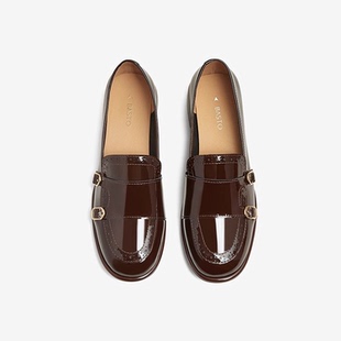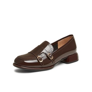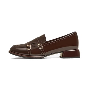A1819AA5 粗跟圆头布洛克皮鞋 专柜正品 百思图2025春通勤牛皮乐福鞋