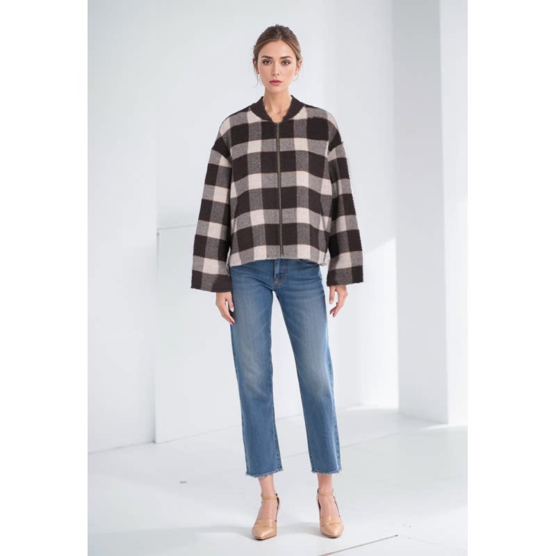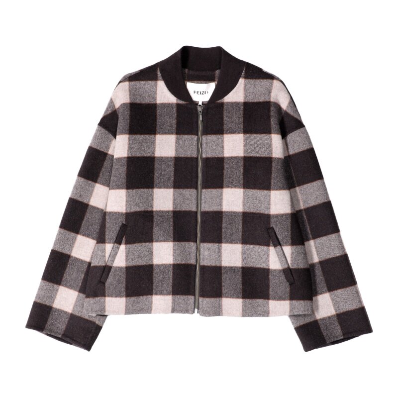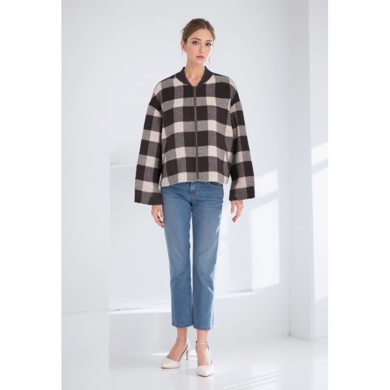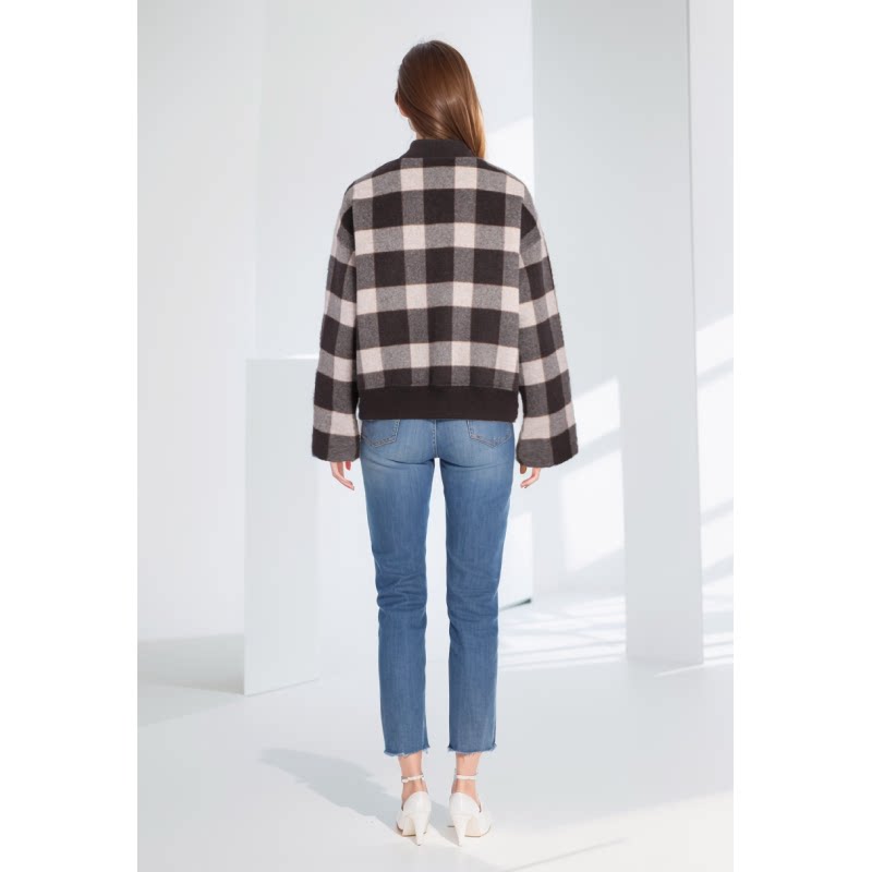 菲姿立领格子拉链短外套F3W119