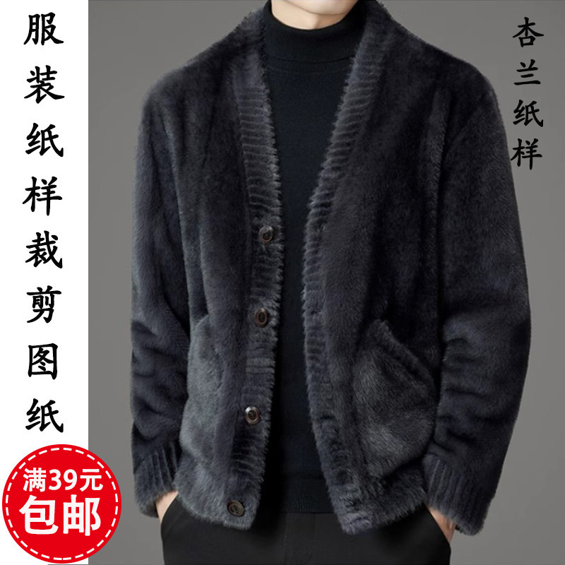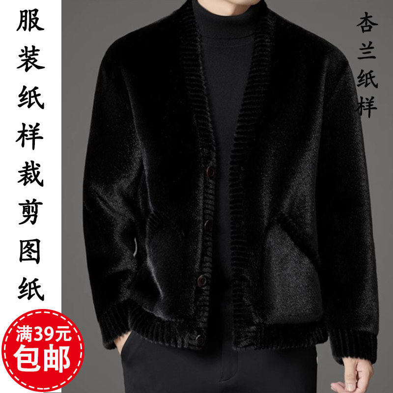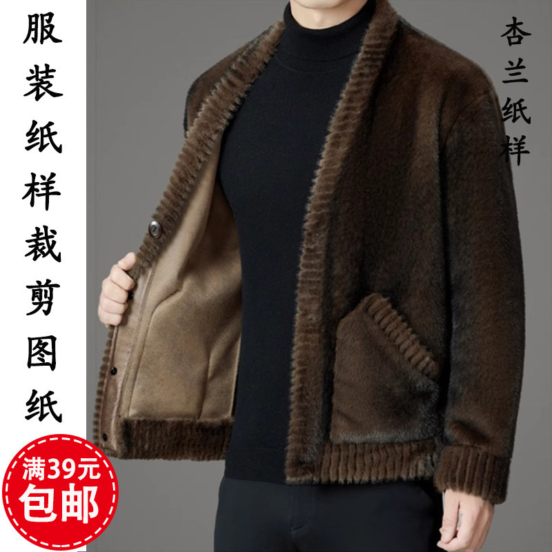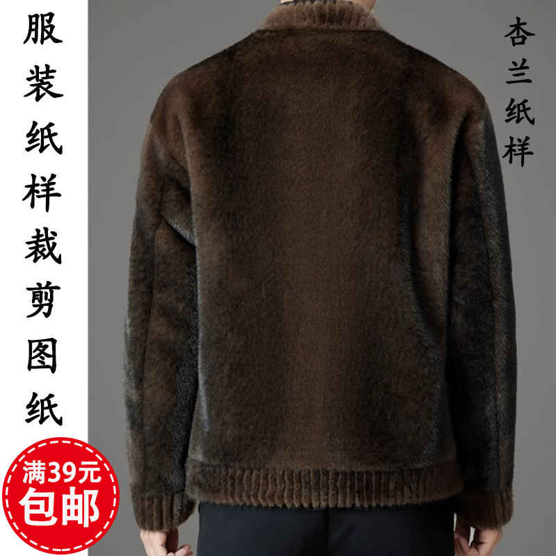 外套1 皮毛一体羊糕毛夹克开衫 1裁剪图纸板 纸样男装 K308杏兰服装