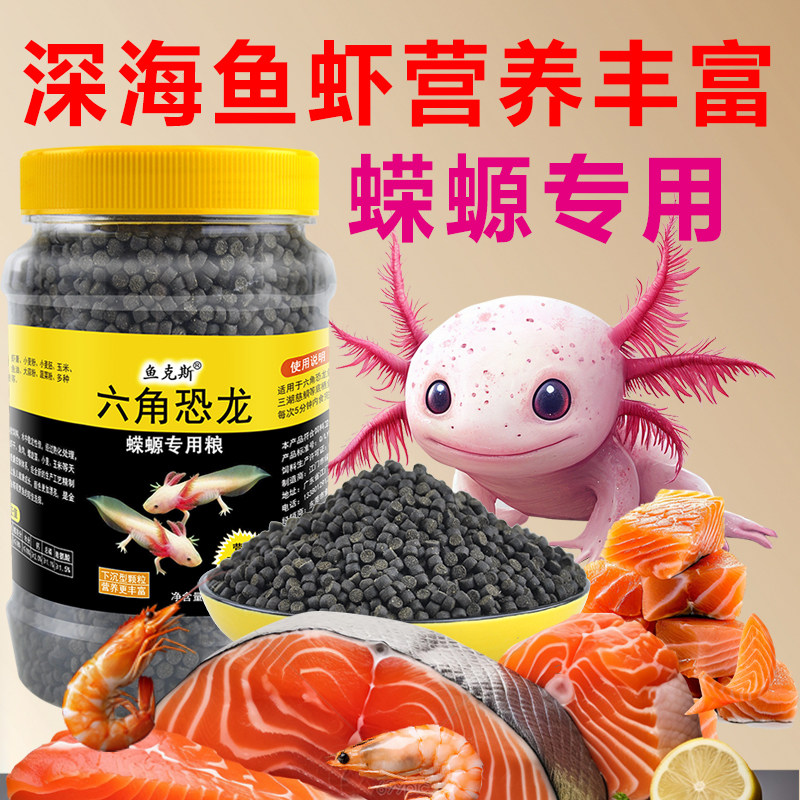 六角恐龙鱼饲料专用蝾螈娃娃鱼小火龙鱼颗粒鱼食高蛋白下沉型鱼粮