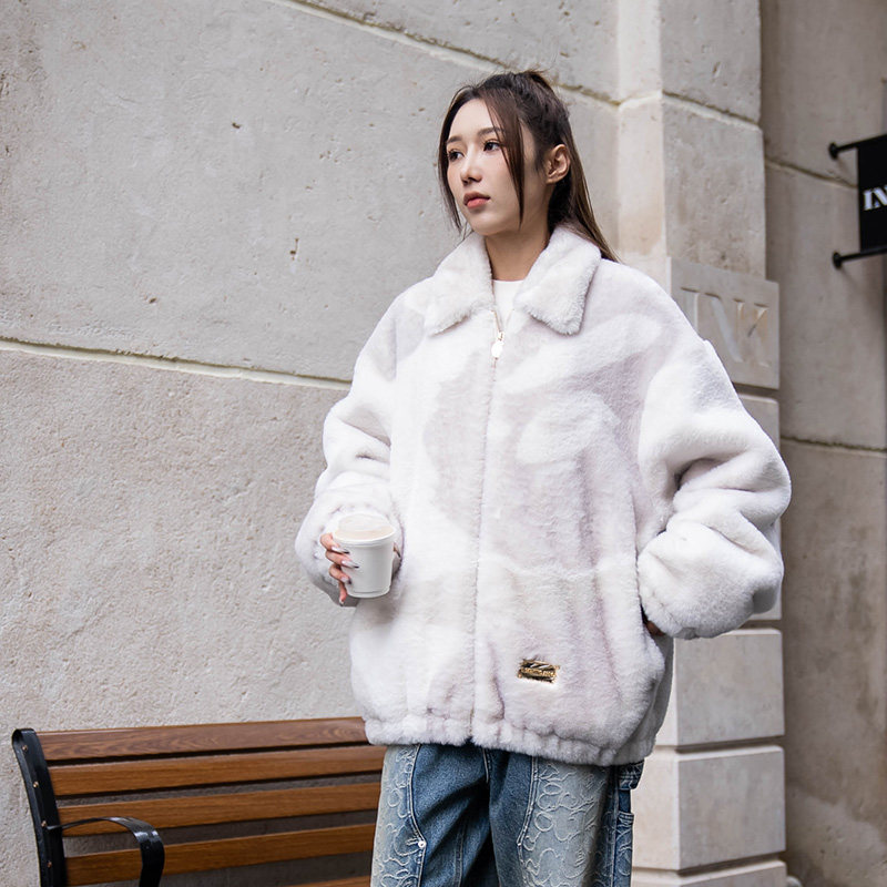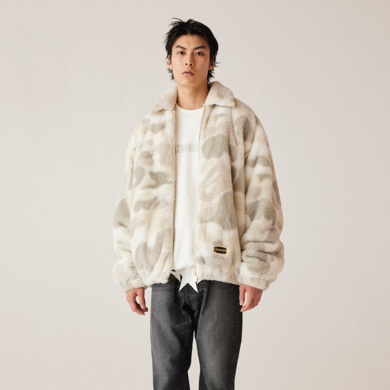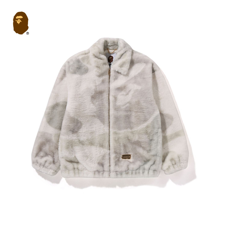 BAPE男装 24年秋冬字母标迷彩图案拉链毛绒外套140319N