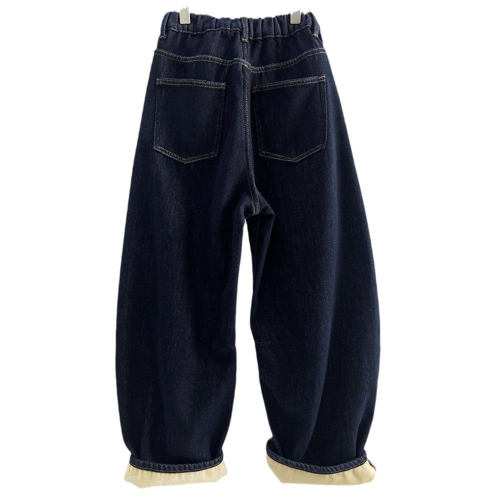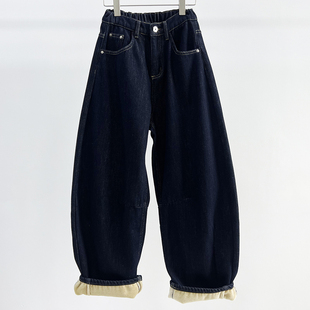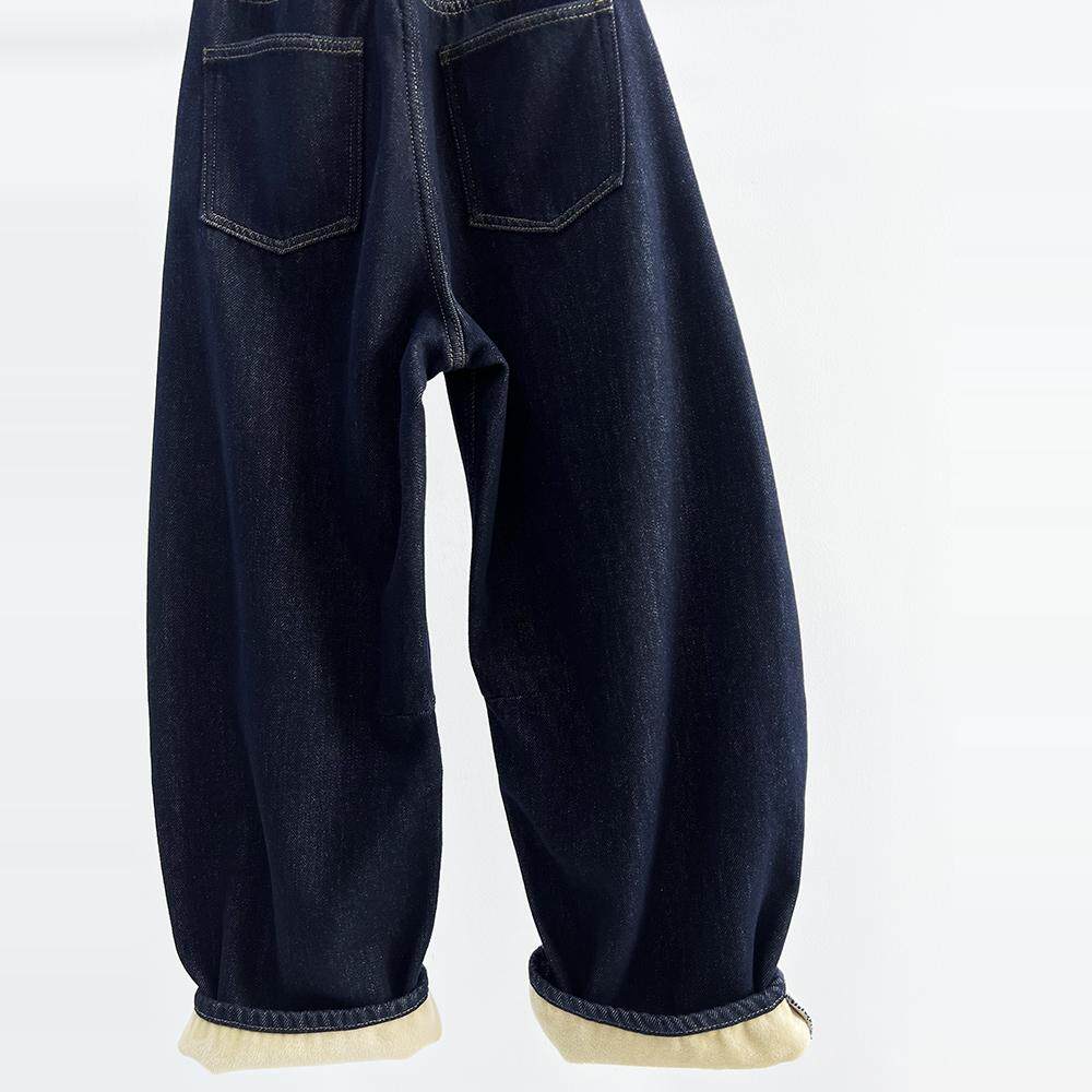 新款 宽松镰刀裤 加绒加厚牛仔女弯刀裤 香蕉裤 潮 大版 牛道途2025冬季