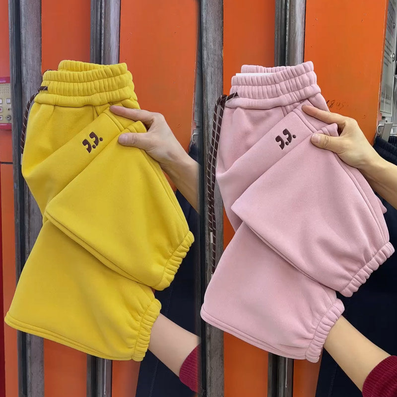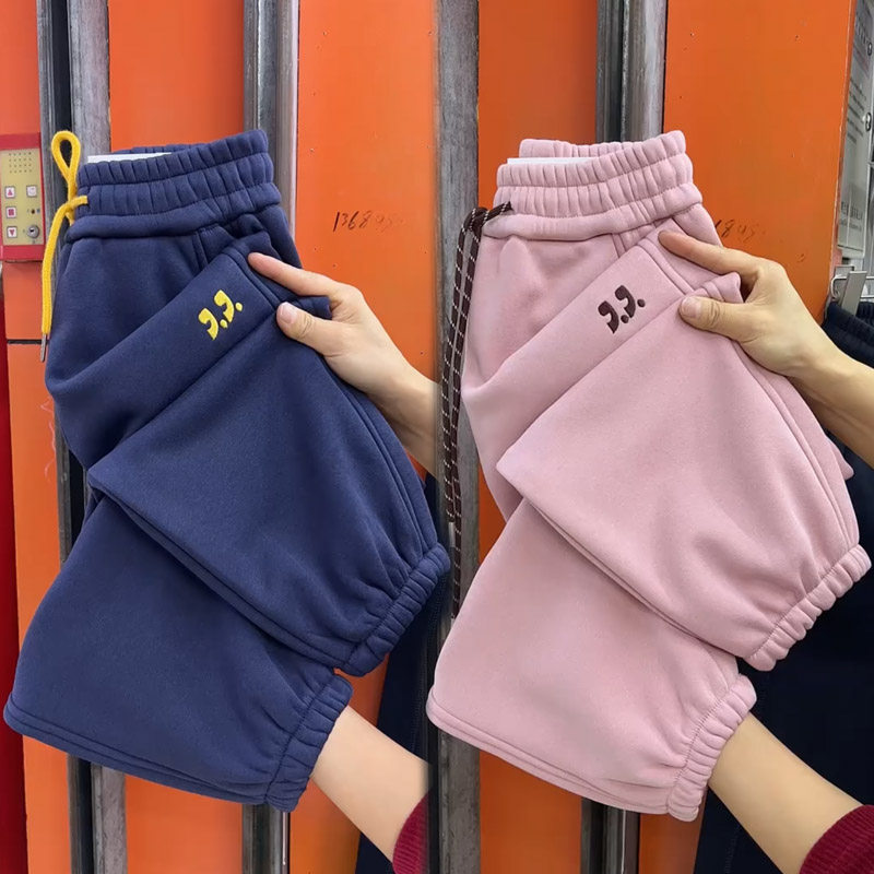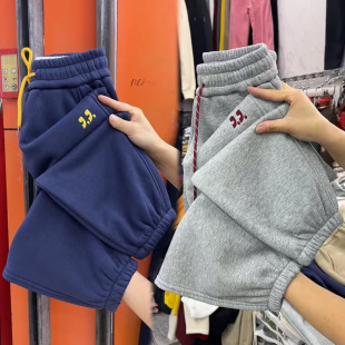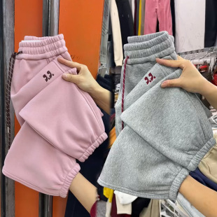 显瘦保暖九分哈伦裤 小个子加绒加厚卫裤 宽松束脚运动裤 新款 女冬季