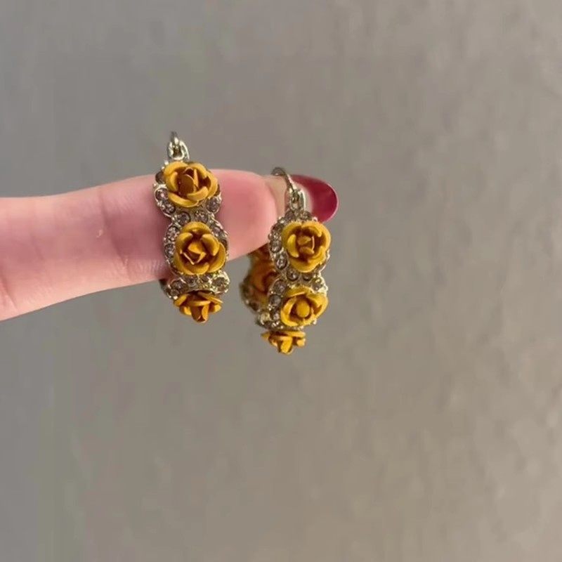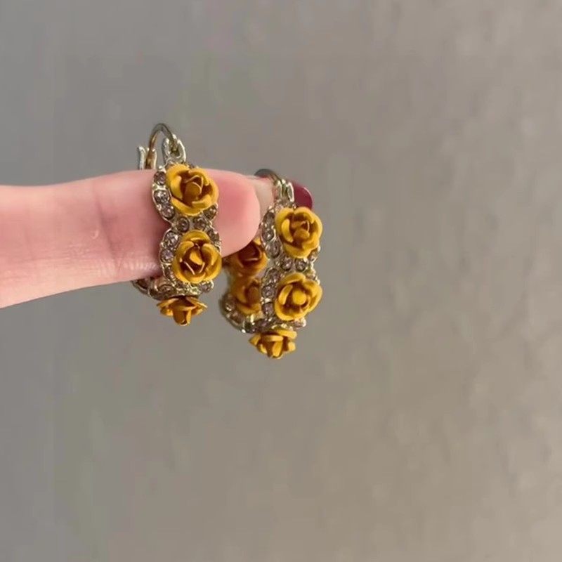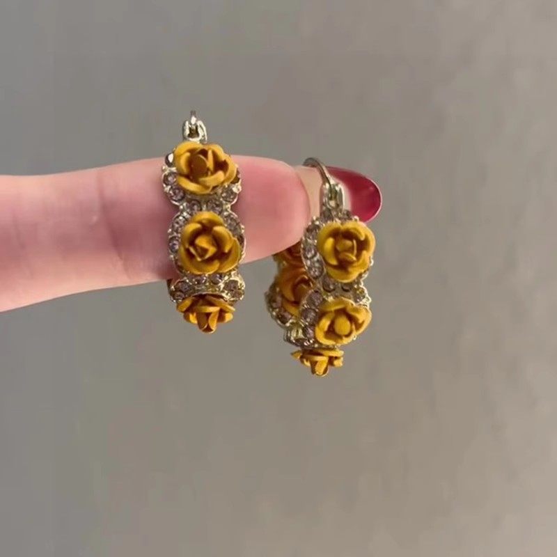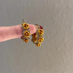 s925银针耳饰彩色锆石小雏菊耳钉轻奢小众高级感时尚 气质百搭耳环