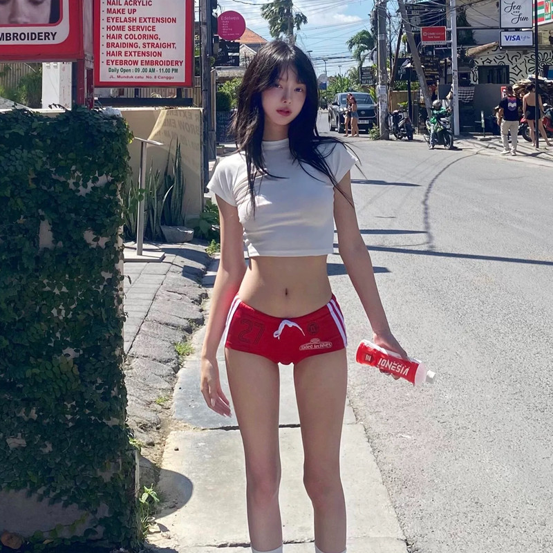 三件套短款 分体平角裤 t恤温泉度假 辣妹风性感红色抹胸泳衣女 美式