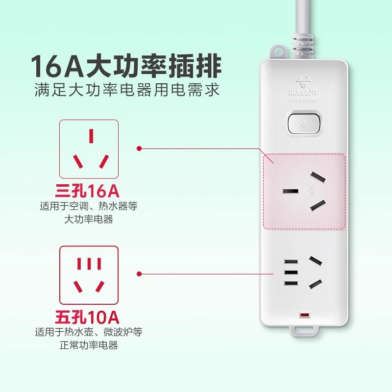 公牛大功率插座4000W插排插3000W插座3500瓦电磁炉空调热水器专用