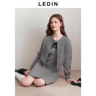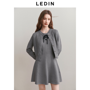 两件套连衣裙 贝壳花边打底裙女装 乐町绞花针织裙2025春秋季 新款