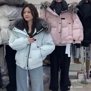 加厚连帽面包服小外套 新款 90白鸭绒云朵感泡芙羽绒服女短款 秋冬季