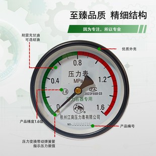 储气罐杭州富阳华科压力轴向表Y100Z带超压使用预警红标线压力表